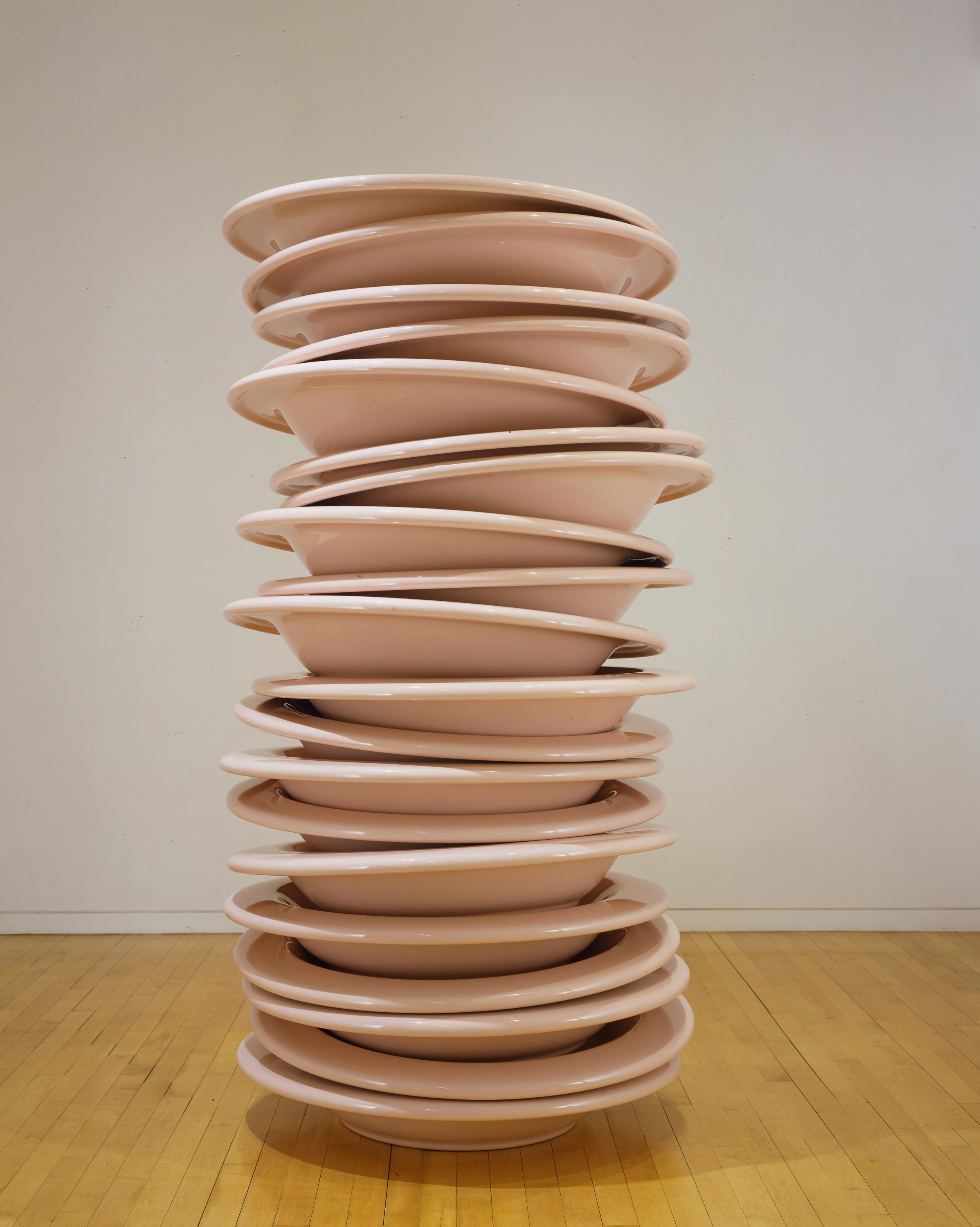 El artista estadounidense Robert Therrien es reconocido por sus esculturas detalladas y de gran escala que representan objetos domésticos comunes, como sillas plegables, mesas de cocina y pilas de platos. Estas piezas generan un impacto inmediato en los espectadores, quienes pueden experimentar una sensación de asombro infantil. Su práctica escultórica refleja una sensibilidad arraigada en la observación y la contemplación de lo cotidiano. Al recrear a escala real habitaciones y símbolos como muñecos de nieve, cerraduras y sombreros, transforma estos elementos en enigmas que resaltan la singularidad de lo aparentemente simple.